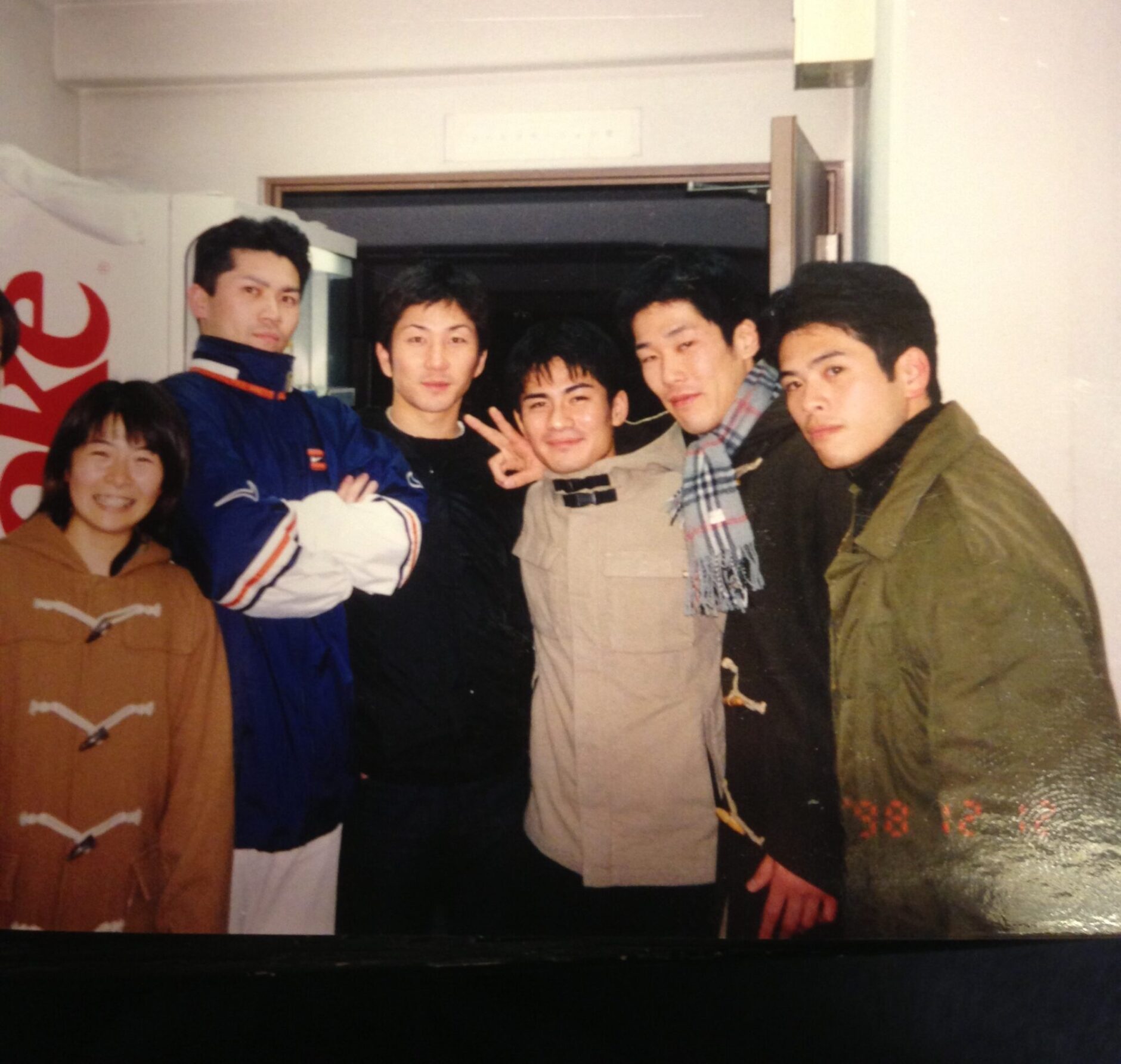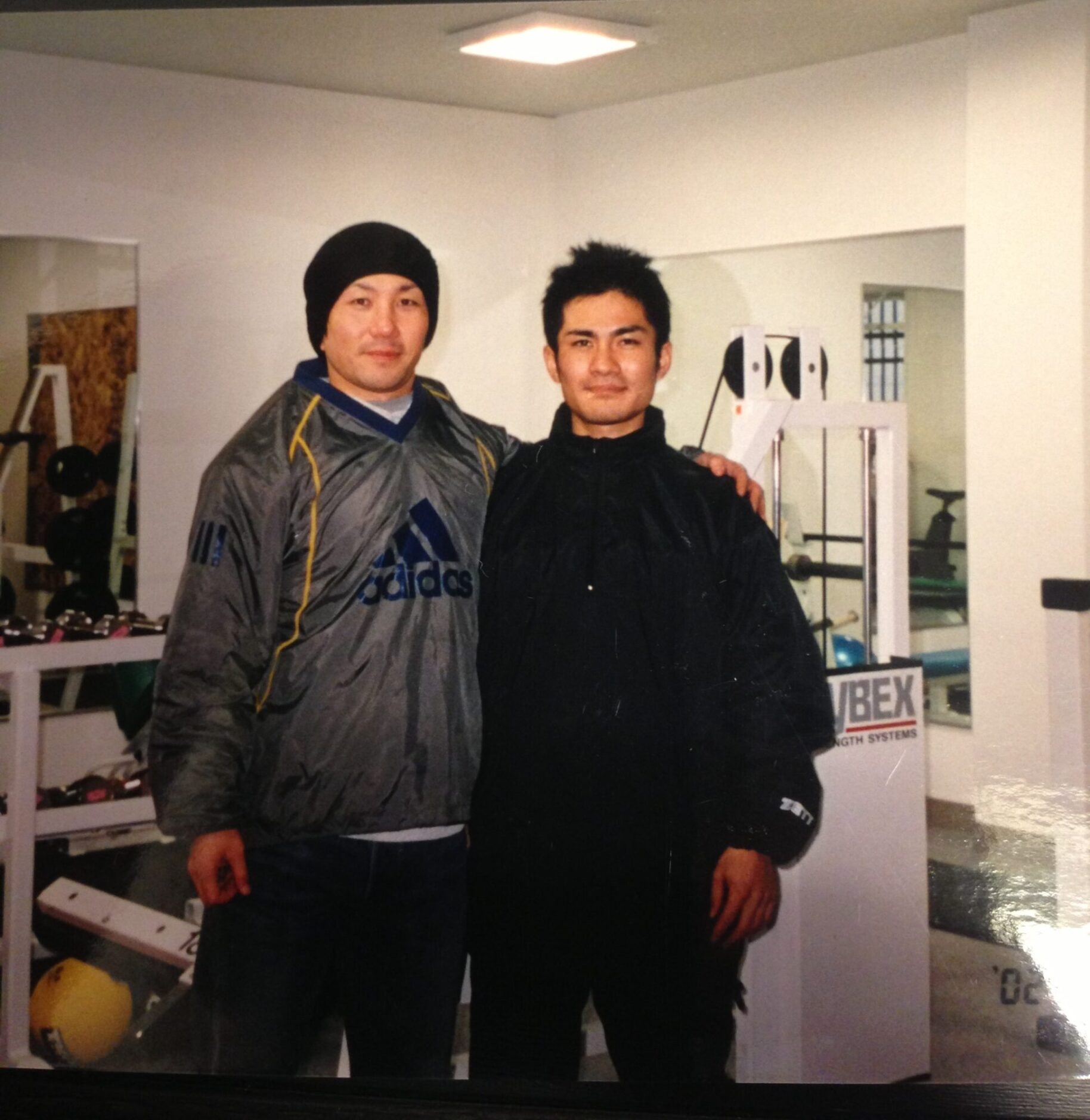 (2002年12月:私がパーソナルトレーニングジム開業に向けて最終準備。ジムを見に来てくれた桝谷との写真。)