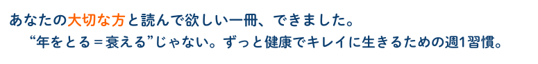 運動の本質を理解し実践することで、より体重管理能力は高まりますし、「介護いらず・病気知らず・健康美」につながる自己管理能力を高めることができます。結果、「日本国民を元気にする!医療費削減に貢献する!」という想いを込めています。 -